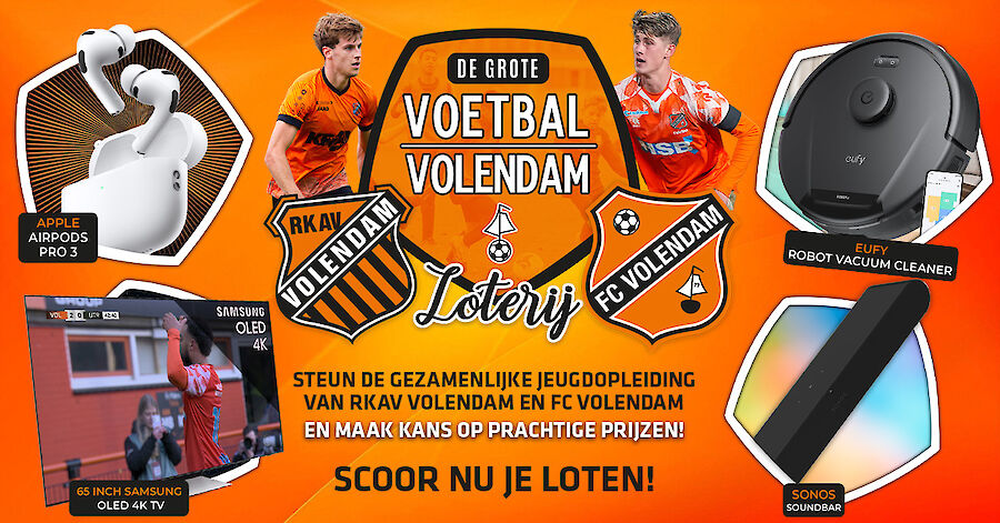 Om structureel op niveau te spelen is het van levensbelang dat Voetbal Volendam naar een nóg hoger plan wordt getild. Daar hebben RKAV Volendam en FC Volendam de afgelopen periode mooie stappen in gezet. Maar we zijn er nog niet: om onze ambities na te jagen, zijn er investeringen nodig. Daar kun jij als supporter een bijdrage aan leveren. Alle opbrengsten komen ten goede aan Voetbal Volendam. Scoor hier jouw loten!