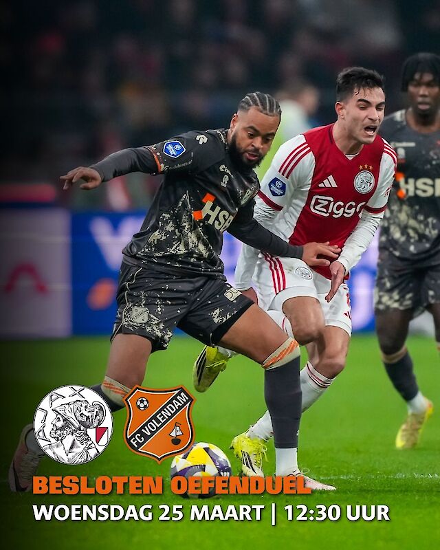 FC Volendam speelt woensdagmiddag een oefenduel tegen Ajax. De aftrap is om 12:30 uur. De wedstrijd is besloten, maar wordt wel live uitgezonden via het YouTube-kanaal van de Amsterdammers. FC Volendam deelt updates via social media.