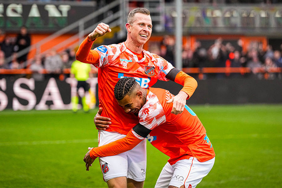 Daarmee was het spektakel echter nog niet voorbij. Diep in blessuretijd werd het gekkenhuis compleet. Invaller Alex Plat ving een afgeslagen bal op en legde breed op Precious Ugwu. Die aarzelde geen moment en haalde verwoestend uit. Zijn granaatinslag spatte uiteen op de paal, maar de bal ketste vervolgens gelukkig tegen het lichaam van Mühren en rolde het doel in. Mühren stond erbij en keek ernaar maar het Kras Stadion ontplofte: 3 - 2.